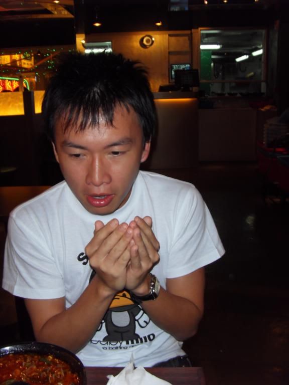 The 部长 actually walked pass a few times see rick struggle and i think she is um chio-ing... hahaha... She also offer to change the soup for rick... So caring... Think she noes lah, normal ppl cannot take it de... Rick 挑战失败!