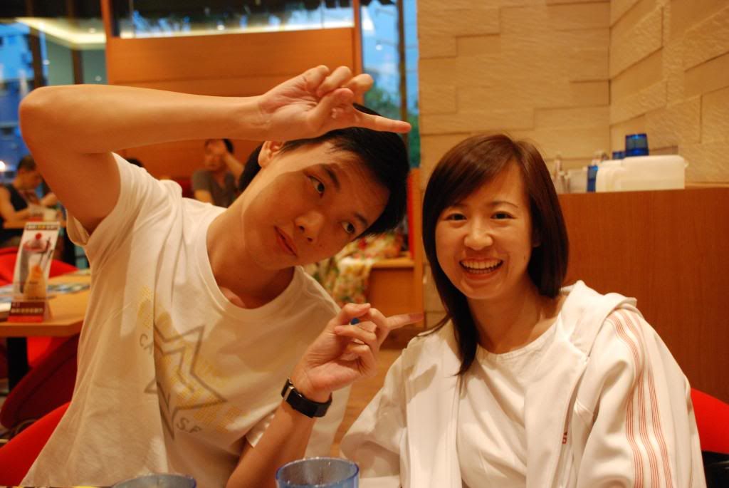 Before dinner a few of us went to TOP 1 KTV. This is my 1st time there loh... I quite like there, sound system not bad, but the mic is cui, dented one... The room also got disco light and can 喷烟 haha like stage performance! sibei cool... The free flow drinks CMI lah but it's free! Onli the mango drink is nice... Ricky was late for KTV, and he try to act hiong by singing amei's 《你是爱我的》 which is very funny! hahahah... GVGT see below! On ur speaker at ur own risk!!!