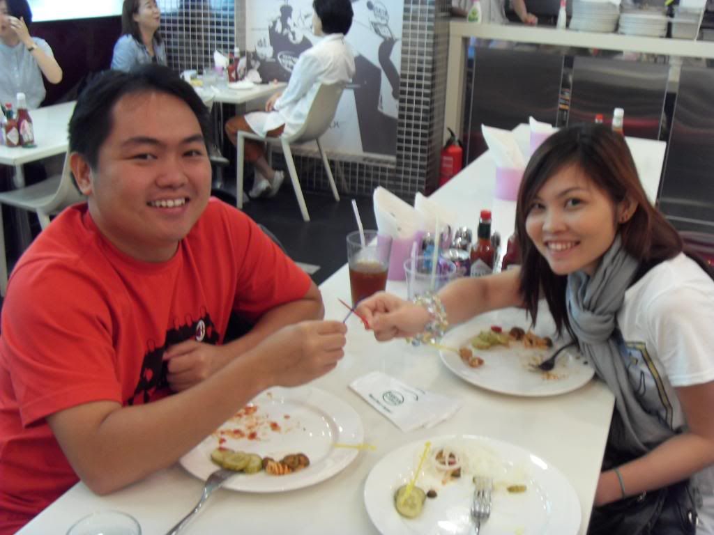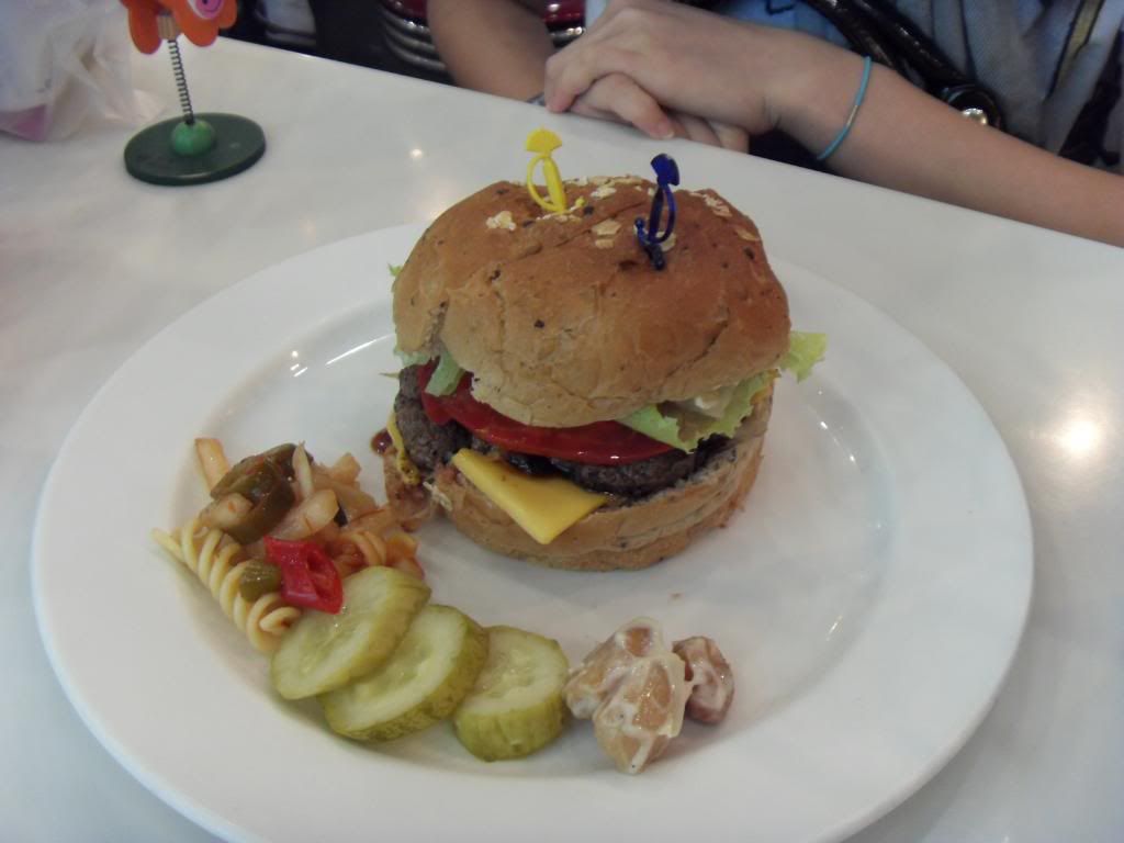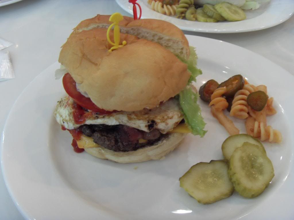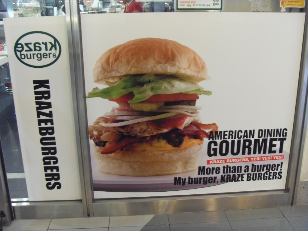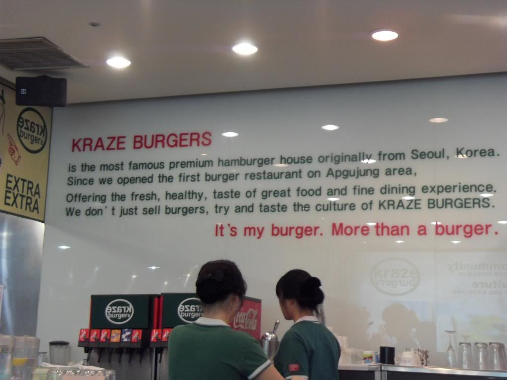 We went to had lunch at Kraze Burger. It's a Korean fast food chain serving American Burgers. They do not have long history, abt 10 years onli but they have abt 25 outlets in Korea. The serving of the burgers are not really as big as Carl's Jr but they are nice! however i find them a bit ex cos they dun have set meal one and one burger cost ard SGD10. There were so many choices haha but mostly all beef de!